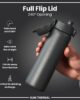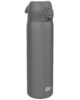 100% leak proof 500ml / 17oz vacuum insulated double wall stainless steel grey water bottle with a smooth flow for spill-free hydration and hygienic flip top cover for one handed use on-the-go. Keeps hot drinks hot and cold drinks icy cold and fresh for hours.
