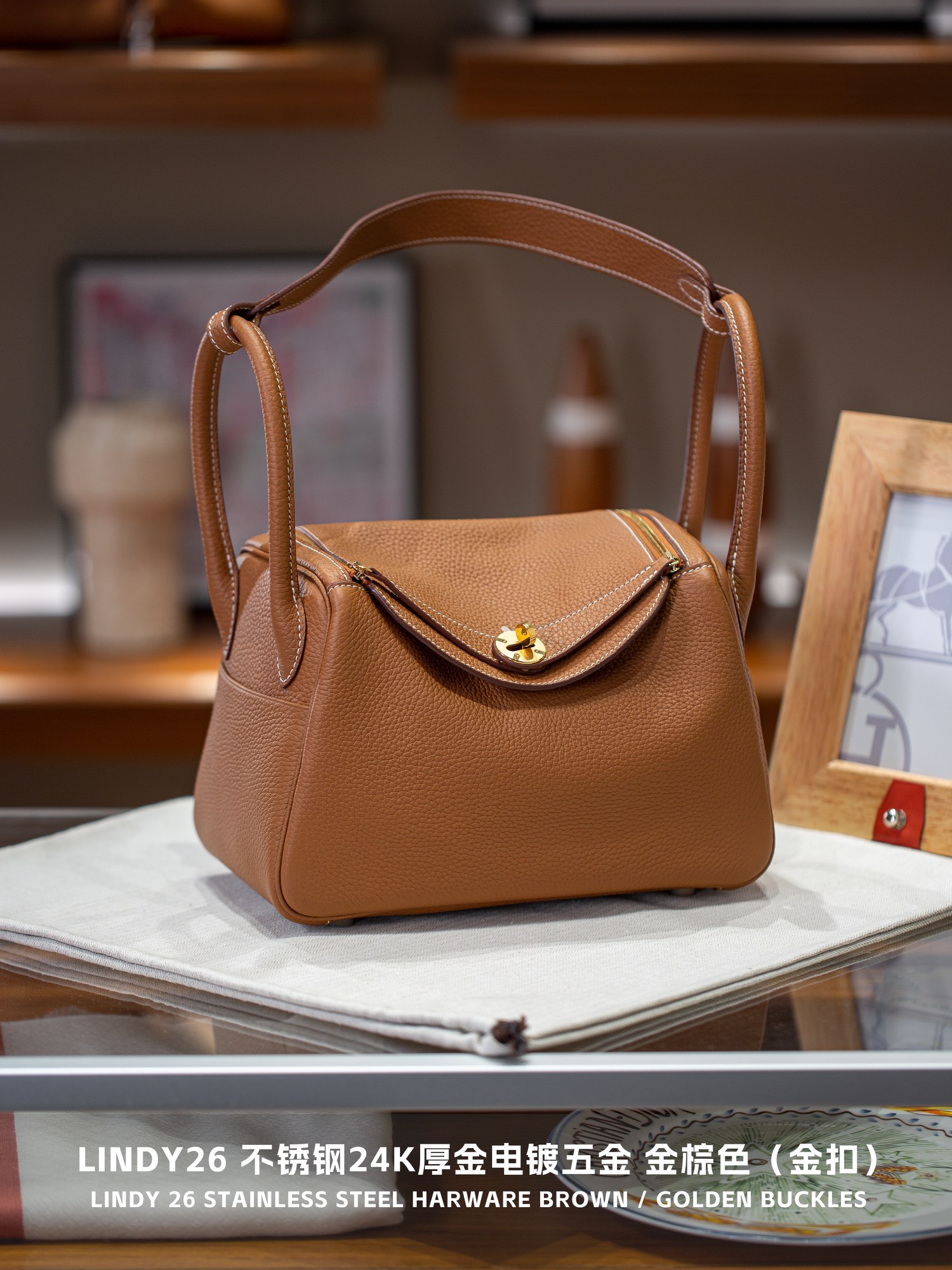 The Lindy 26 Stainless Steel Edition in Gold Brown combines elegance with casual sophistication. Crafted using the Ducoup 45-degree diagonal stitching technique and German-imported Safi thread, this bag features premium stainless steel hardware with 24K thick gold plating. Its structured yet relaxed design provides ample space for daily essentials while maintaining a luxurious and versatile look, perfect for any occasion.